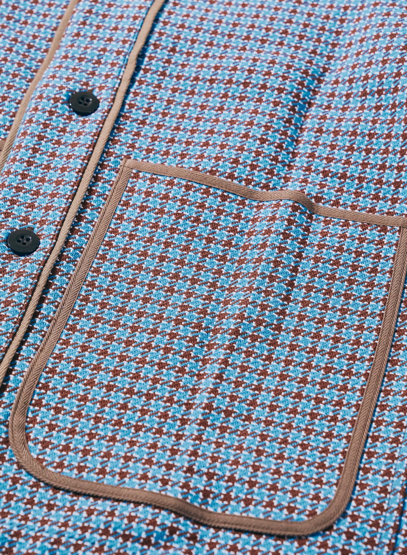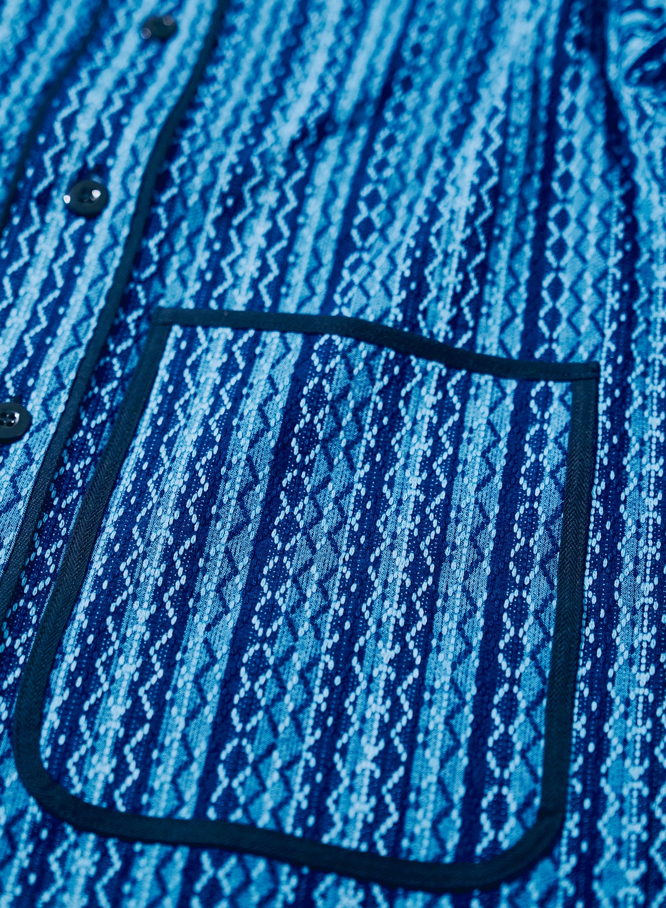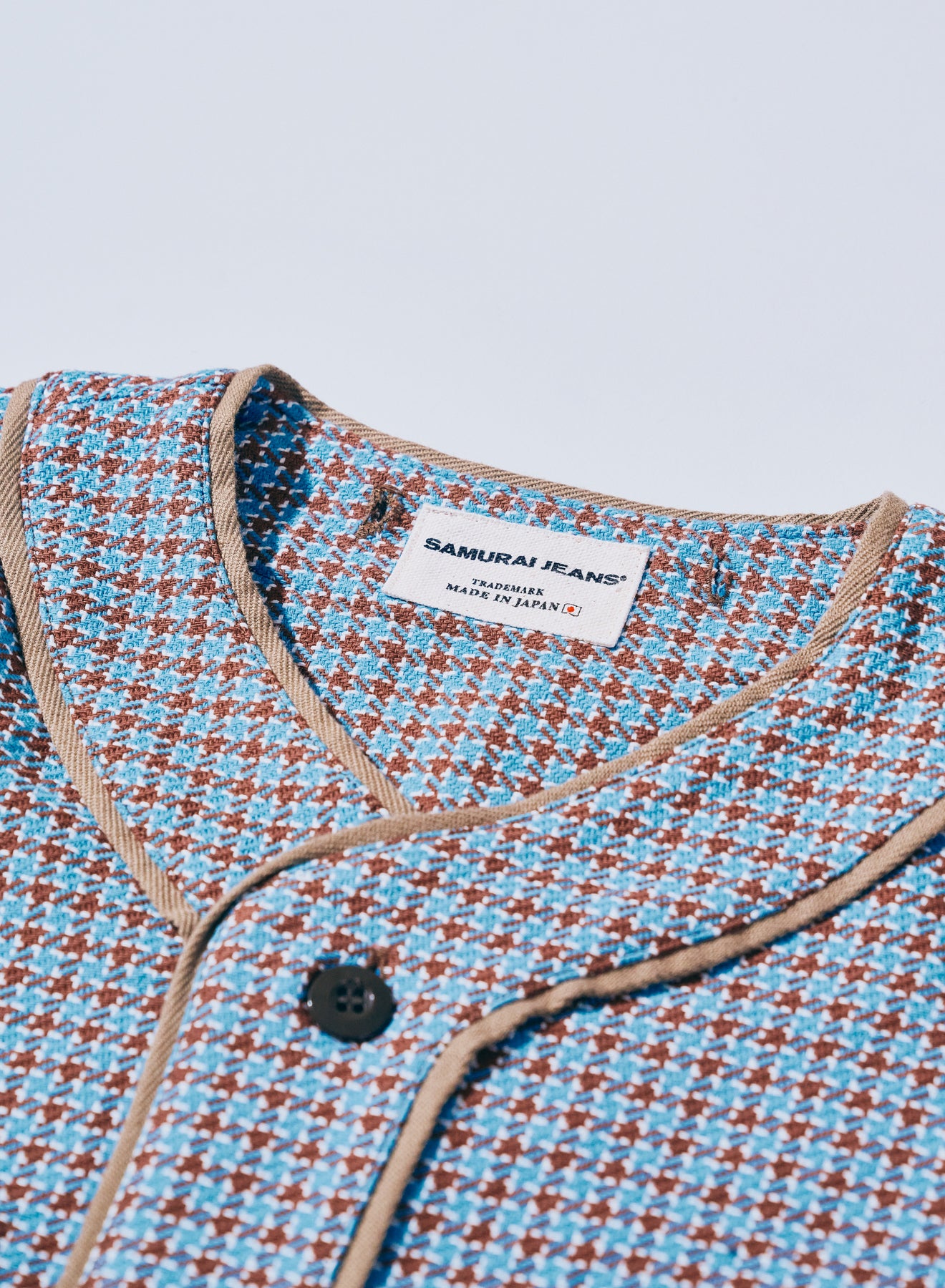 同シーズンで展開されるSJCJK25-SP/SJCJK25-YRにライナーとして装着可能なベースボールシャツ。全体的にややゆとりを持たせたパターンを採用しています。手染めによる、藍とインディゴをミックスさせた刺し子ストライプ生地は、単純になりがちなストライプ柄に2種の色の刺し子を織り交ぜ、特徴ある柄を表現しています。ライトブルー/ブラウンの生地は、2/2綾で構成されたインディゴ糸によるヘビーフランネル。芯までインディゴに染められたこのライトブルー、特殊な反応染めによるブラウンは、ゆっくりと退色し、味わい深い色へと変化していきます。