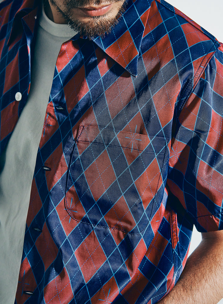 This original cotton/rayon fabric is based on a traditional Japanese pattern known as "narihirabishi", and is a mix of argyle