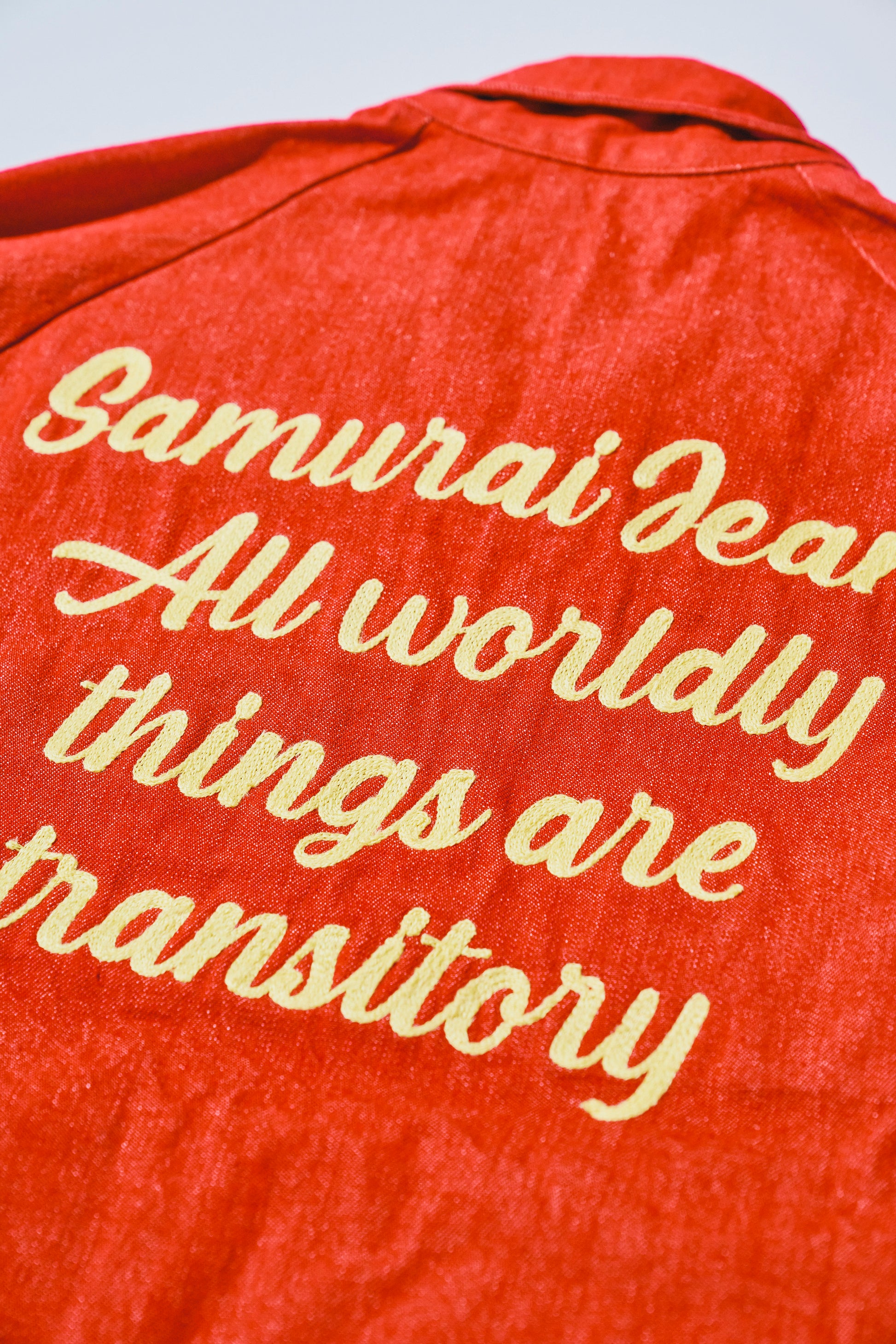 SPEC:Light ounce red denim /Samurai WORK CLOTHES label /Samurai WORK CLOTHES label /