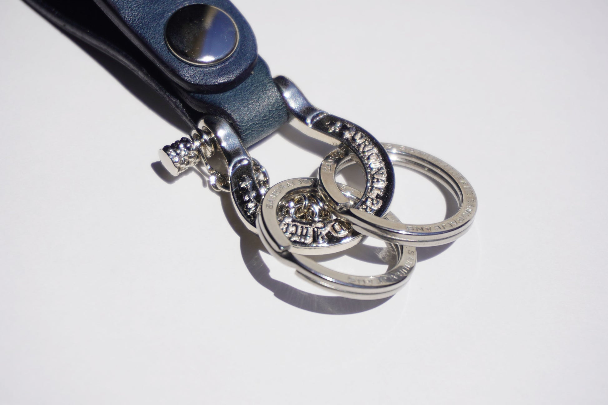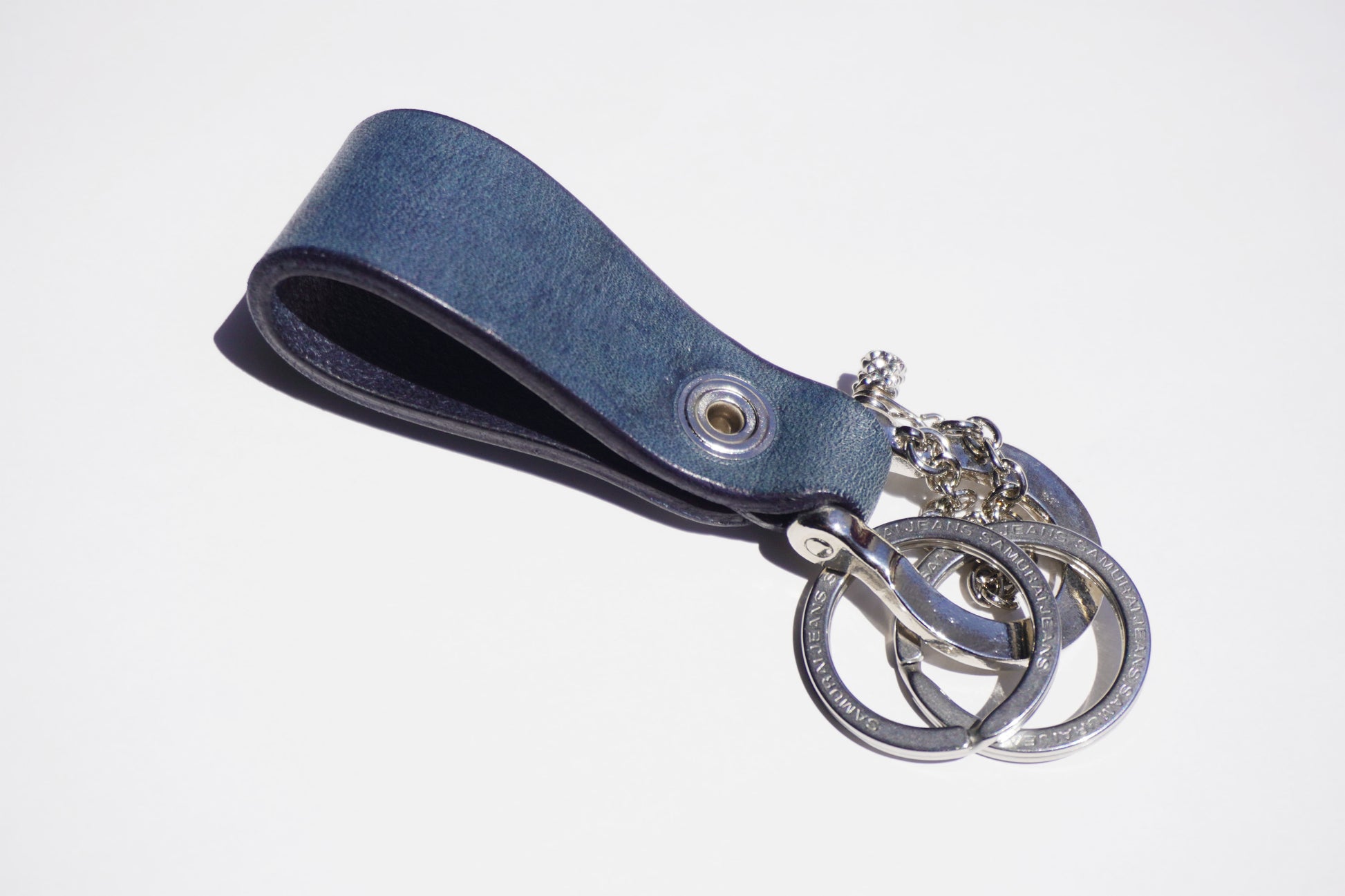Leather key holder made of Japanese Tochigi leather and dyed with Yamato indigo.