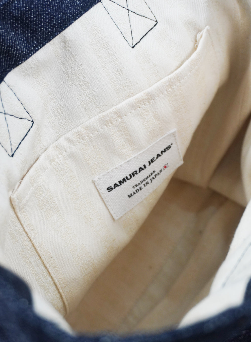 15oz男気セルビッチデニムによるデニムハンドバッグです。デザインはペーパーバッグを落とし込んだ仕様です。内側に小ポケットが付属し小物等の収納が可能になり、日常使いから幅広い用途でご活用頂けます。