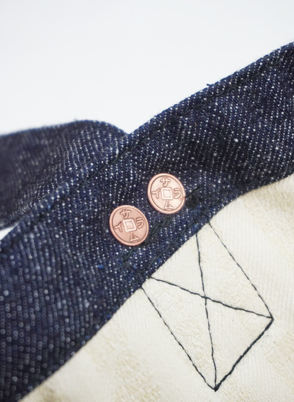 Spec:15oz男気セルビッチデニム/諸行無常スレーキ/日の丸ネーム/サムライリベット/日本製