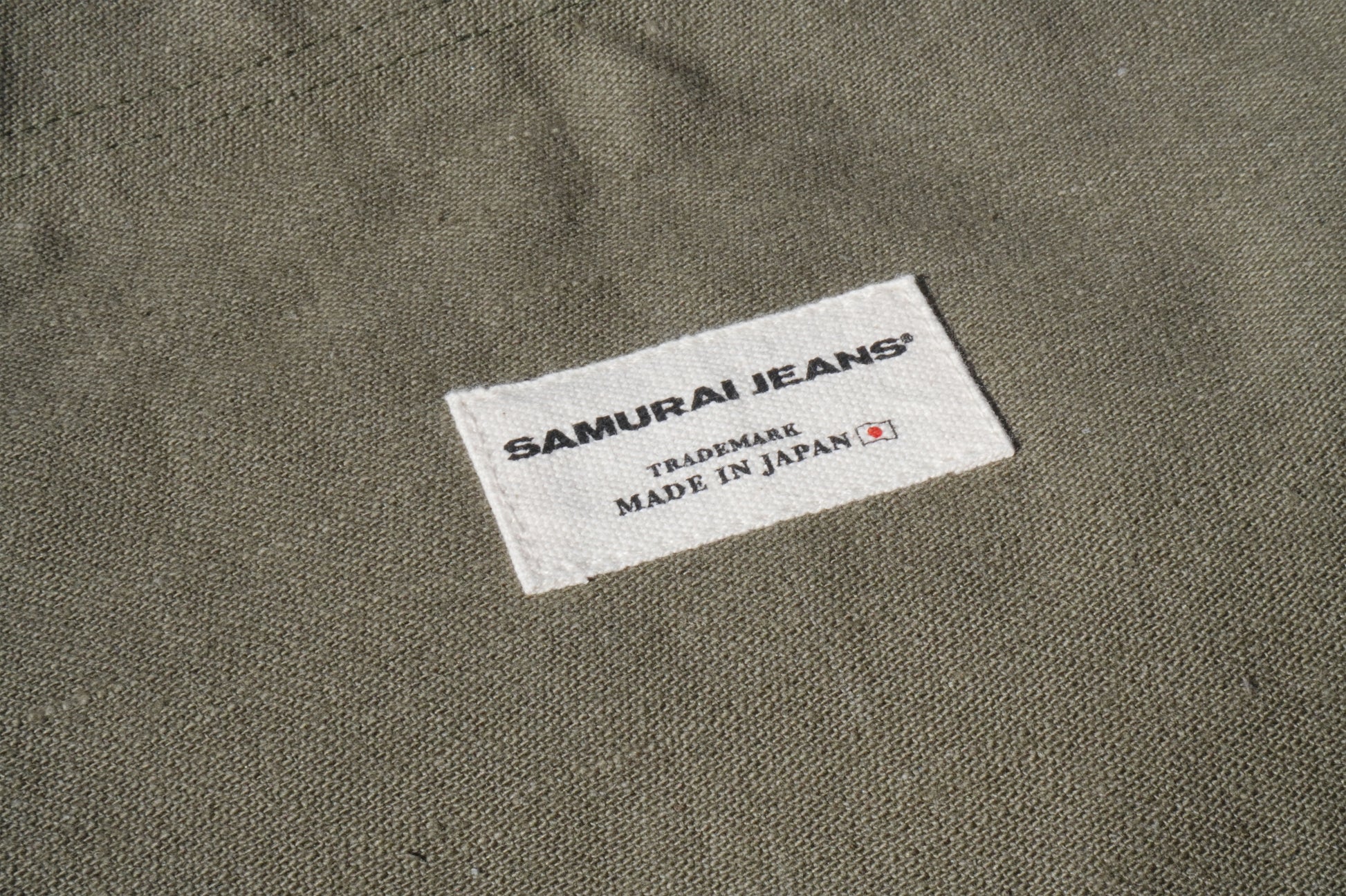 サムライジーンズ定番デニムにも使用される15oz刀耳ヘビーバックサテンセルビッチを使用した大容量トートバッグ
