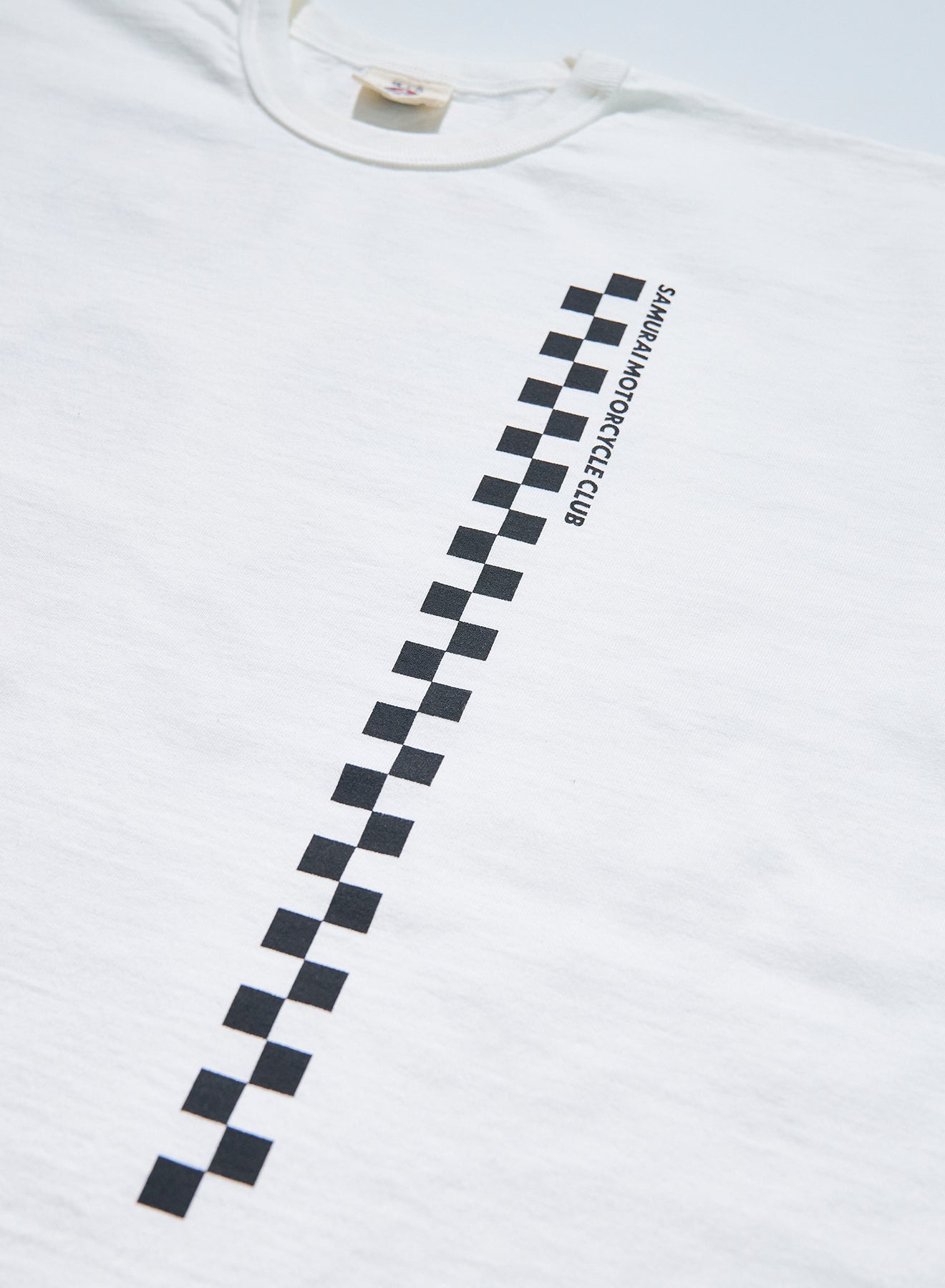 Sampling a custom-made racing jacket, this T-shirt features a classic Samurai logo printed all over it.