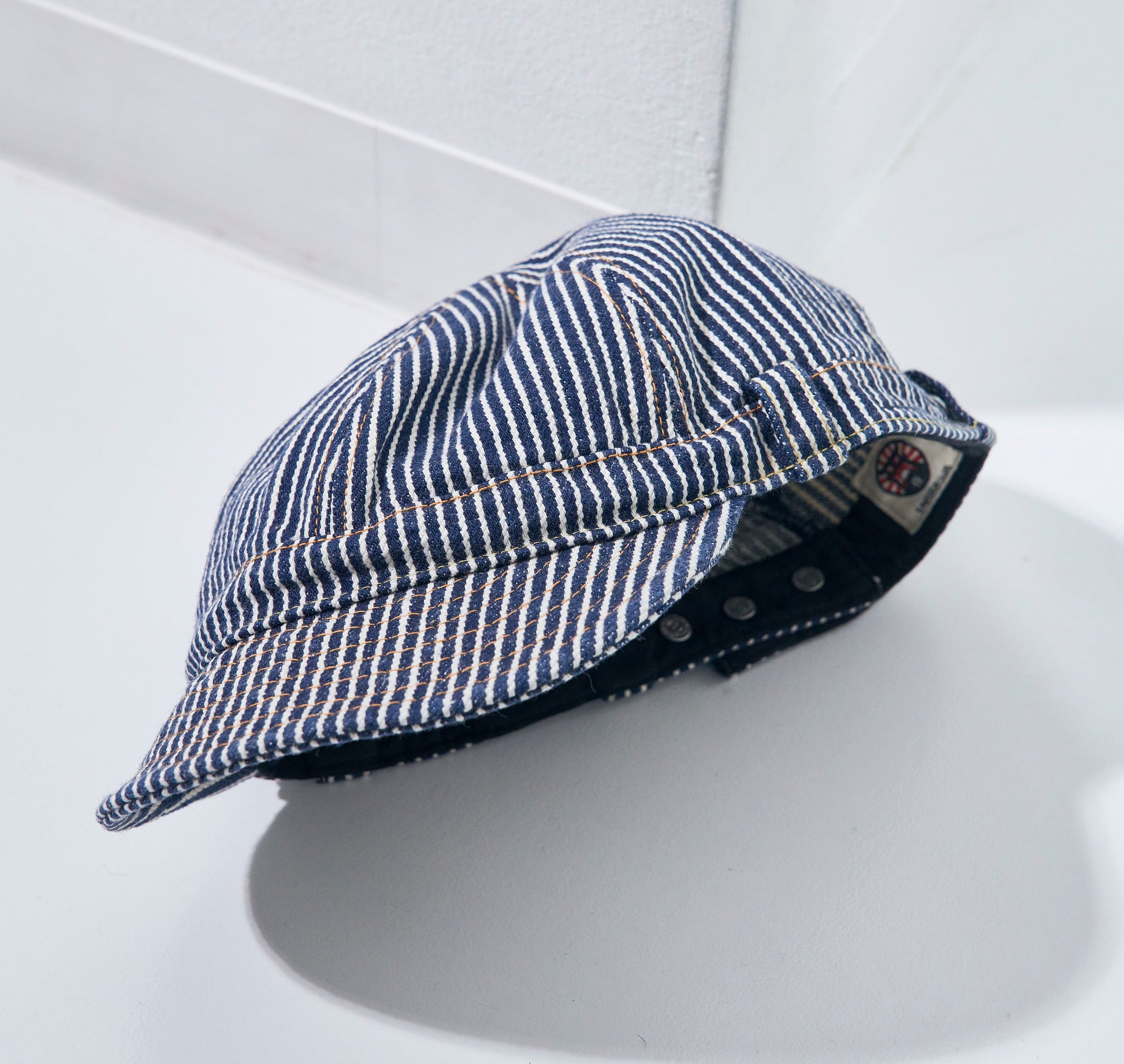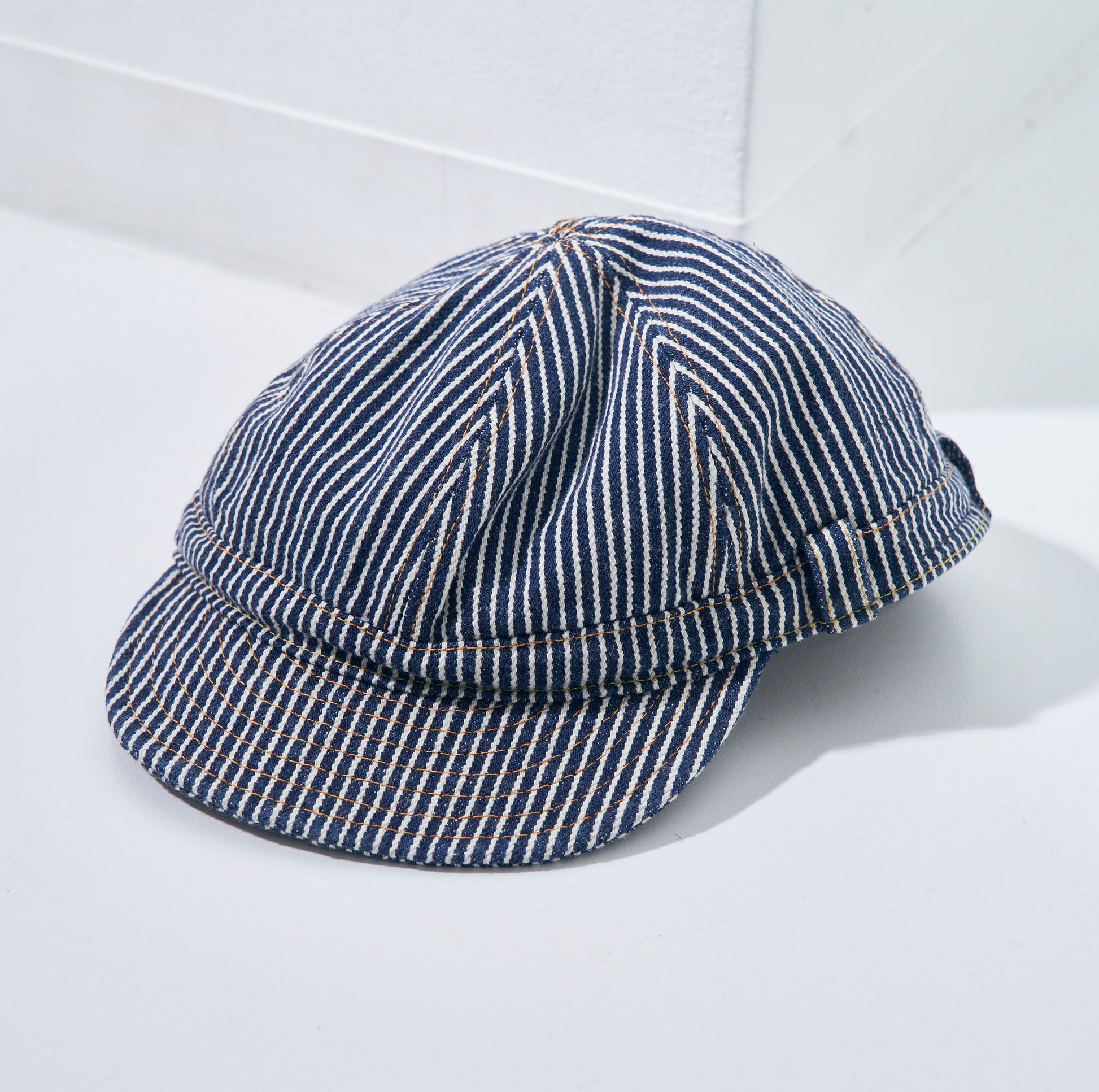 ヒッコリーワークパンツSM410DBN-HCをイメージしたデニムワークキャップです。生地は17ozセルビッチヒッコリーデニムを使用しており、17oz仕様でタフな生地感と経年変化を楽しめます。縫製はSM410DBN-HCと同等の糸を使用しています。庇裏はチェーンステッチが入ります。両サイドにはホルダーが付き、眼鏡を差し込め機能的で被りやすくなっています。FREE SIZEですがアジャスターが付き、鉄製タイヤボタンでサイズ調整が可能です。シルエットはやや深めで使い込む程にデニム特有の表情を楽しめるアイテムです。