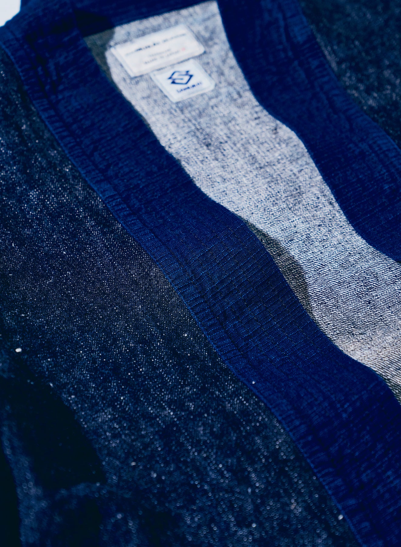 This happi coat is made of our 17oz Zero+ denim and has been dyed in our darkest indigo color. The more you wear this distinctive item the more you can enjoy the prominent texture and unique fades that will reveal themselves over time.