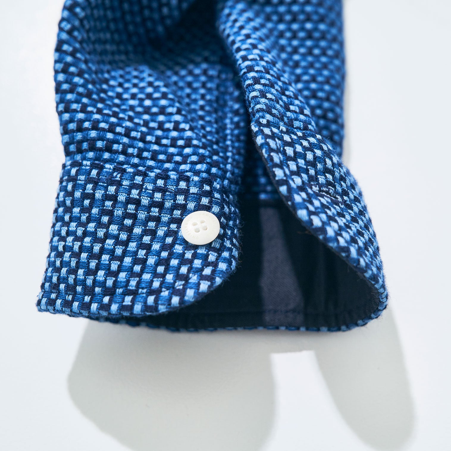 A work shirt made of thick indigo-dyed Oxford fabric. The fabric is made up of threads in three colors: indigo, light blue, and pale water blue. Packed with plenty of vintage work elements, we've used a robust sewing spec centered on rolled triple-stitching to unsure years of worry-free wear.
