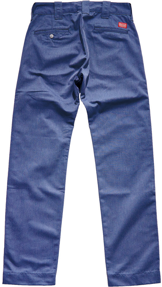 生地はT/C 20 / 10ツイルです。皺になりにくく速乾性にも優れており、穿き始めの質感、エイジングを重ねて柔らかくなってきた時と、それぞれの表情が楽しめます。
