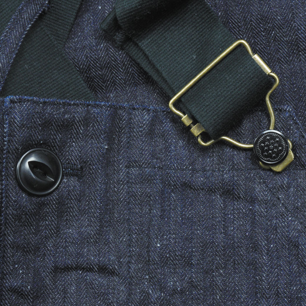 Spec:13oz緯グレーインディゴヘリンボーンデニム/13oz緯グレーブラックヘリンボーンデニム/13oz緯グレーオートミールヘリンボーンデニム/Samurai WORK CLOTHESラベル/Samurai WORK CLOTHESネーム/ユニバーサルファスナー/尿素ボタン/ワンウォッシュ済/日本製