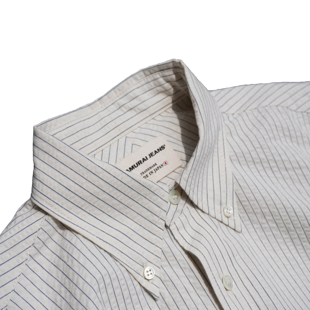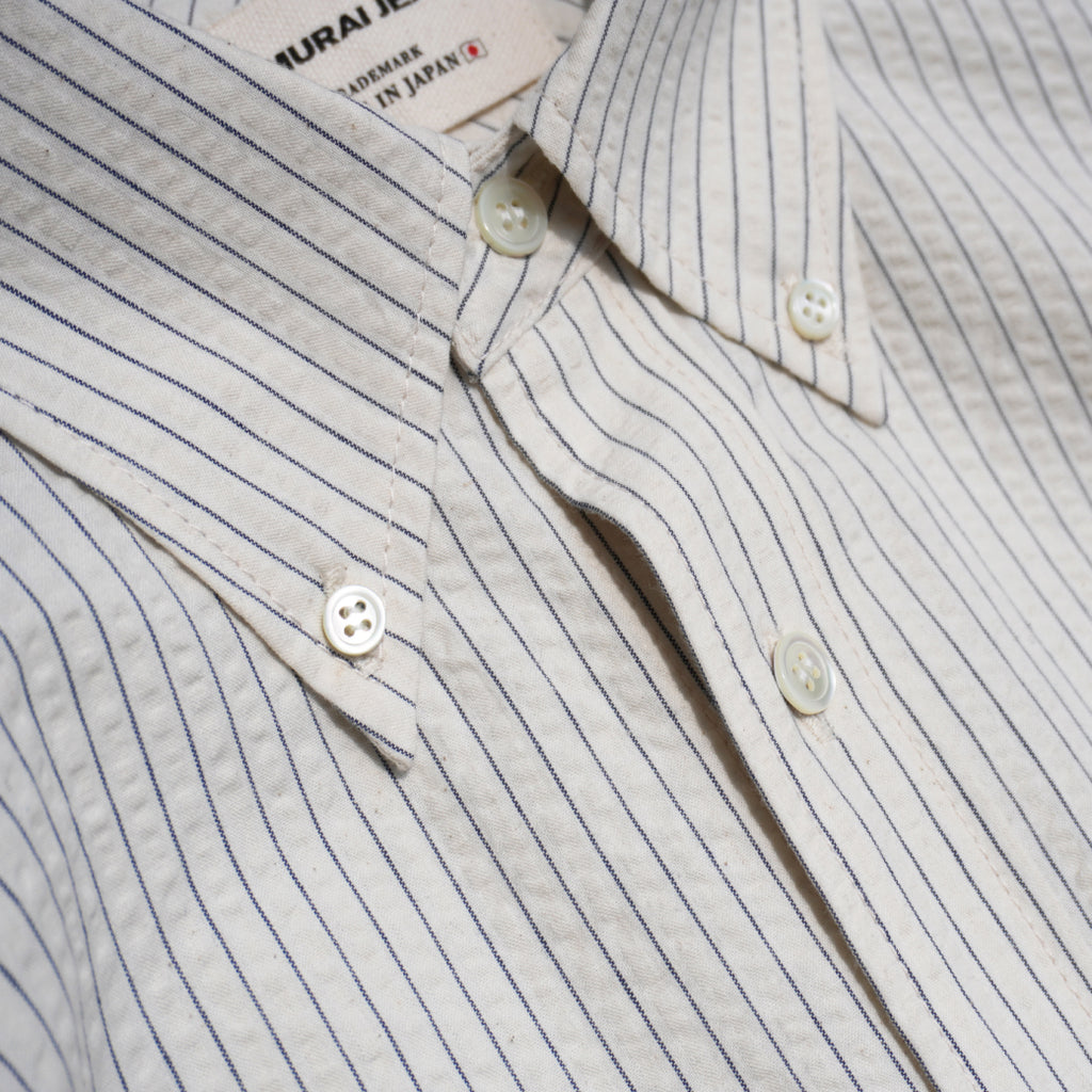 シアサッカー生地を使用した半袖ボタンダウンシャツです。