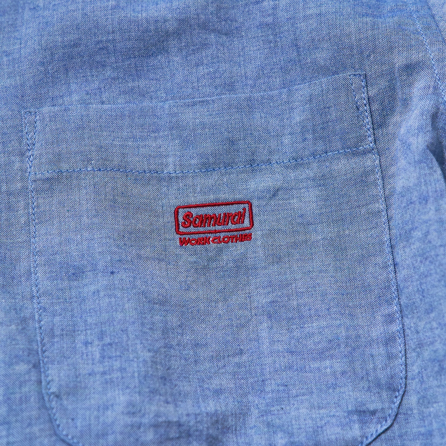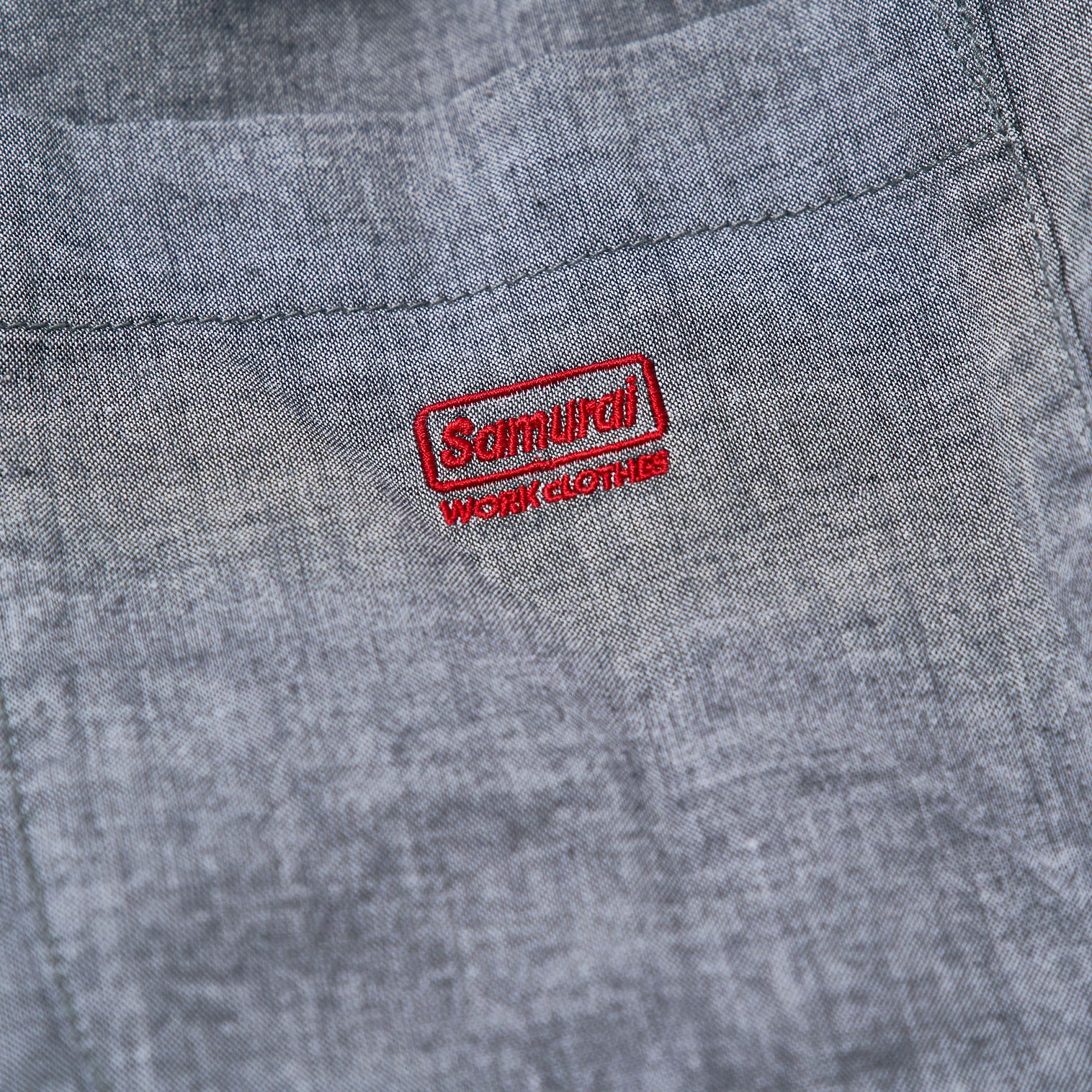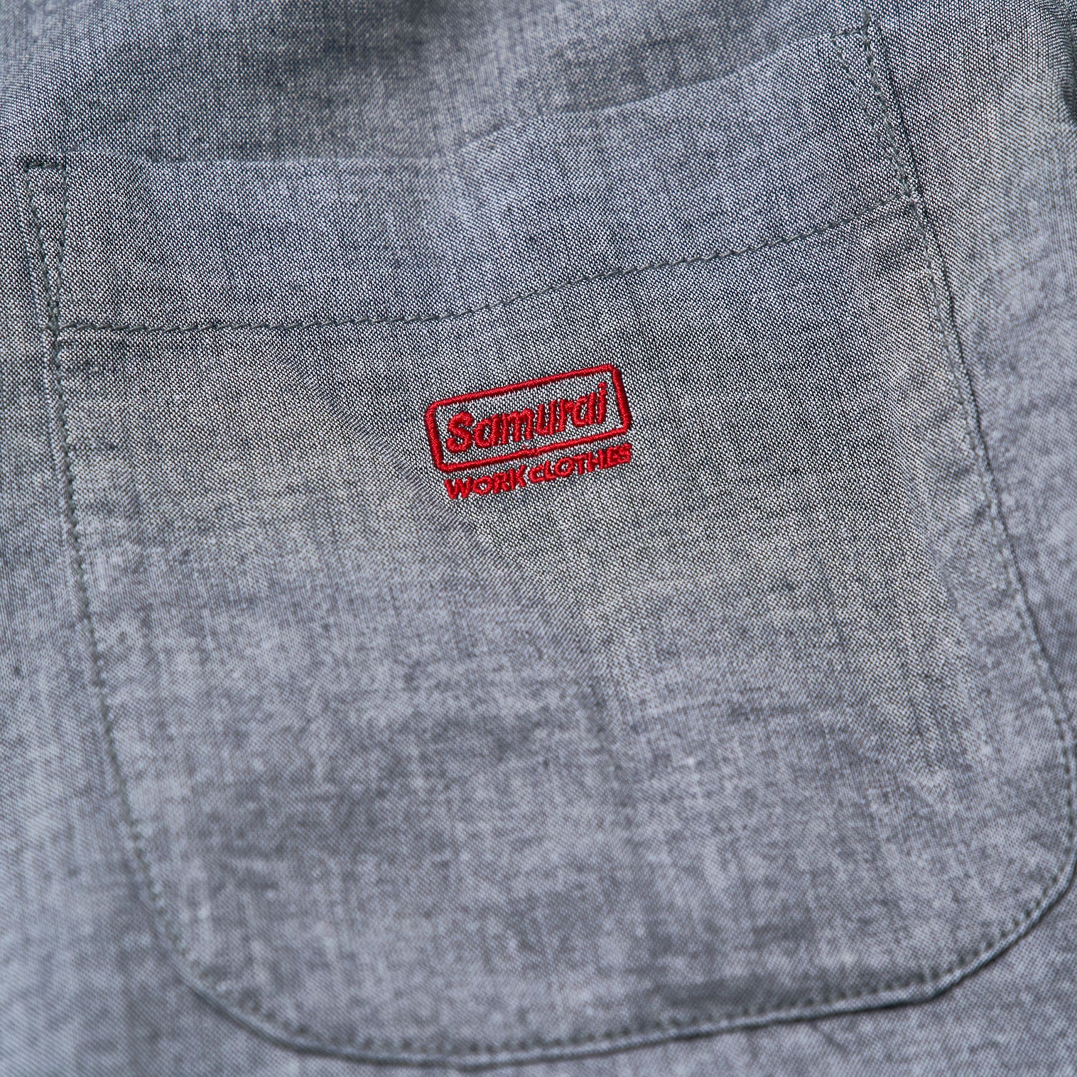Spec:オーガニックコットンシャンブレー生地/Samurai WORK CLOTHES専用ラベル/リングスナップボタン/SWCロゴ刺繍/ワンウォッシュ/日本製