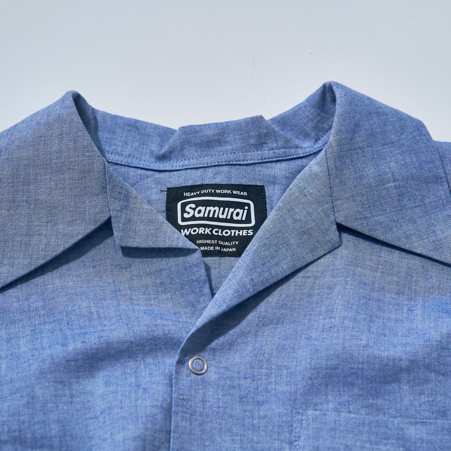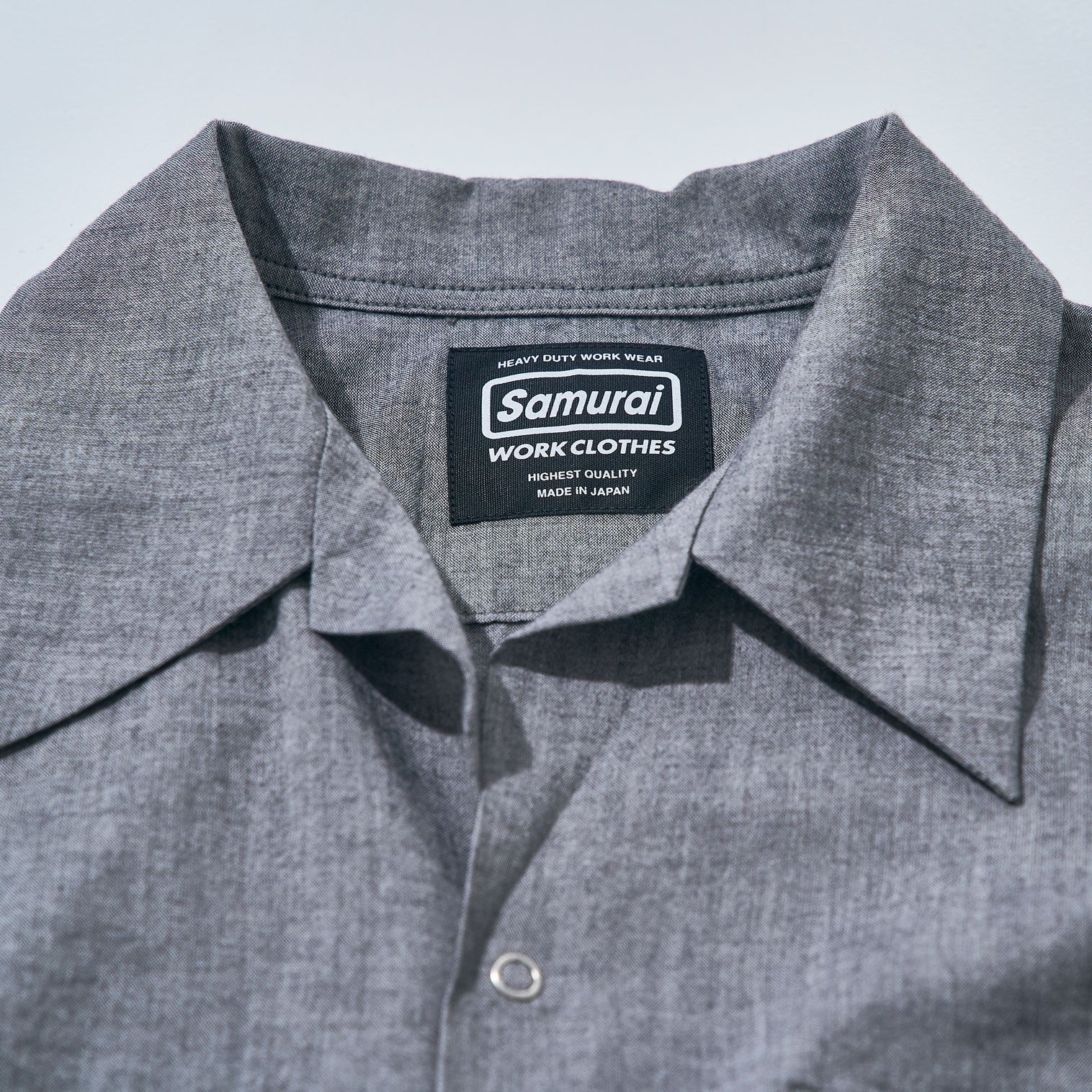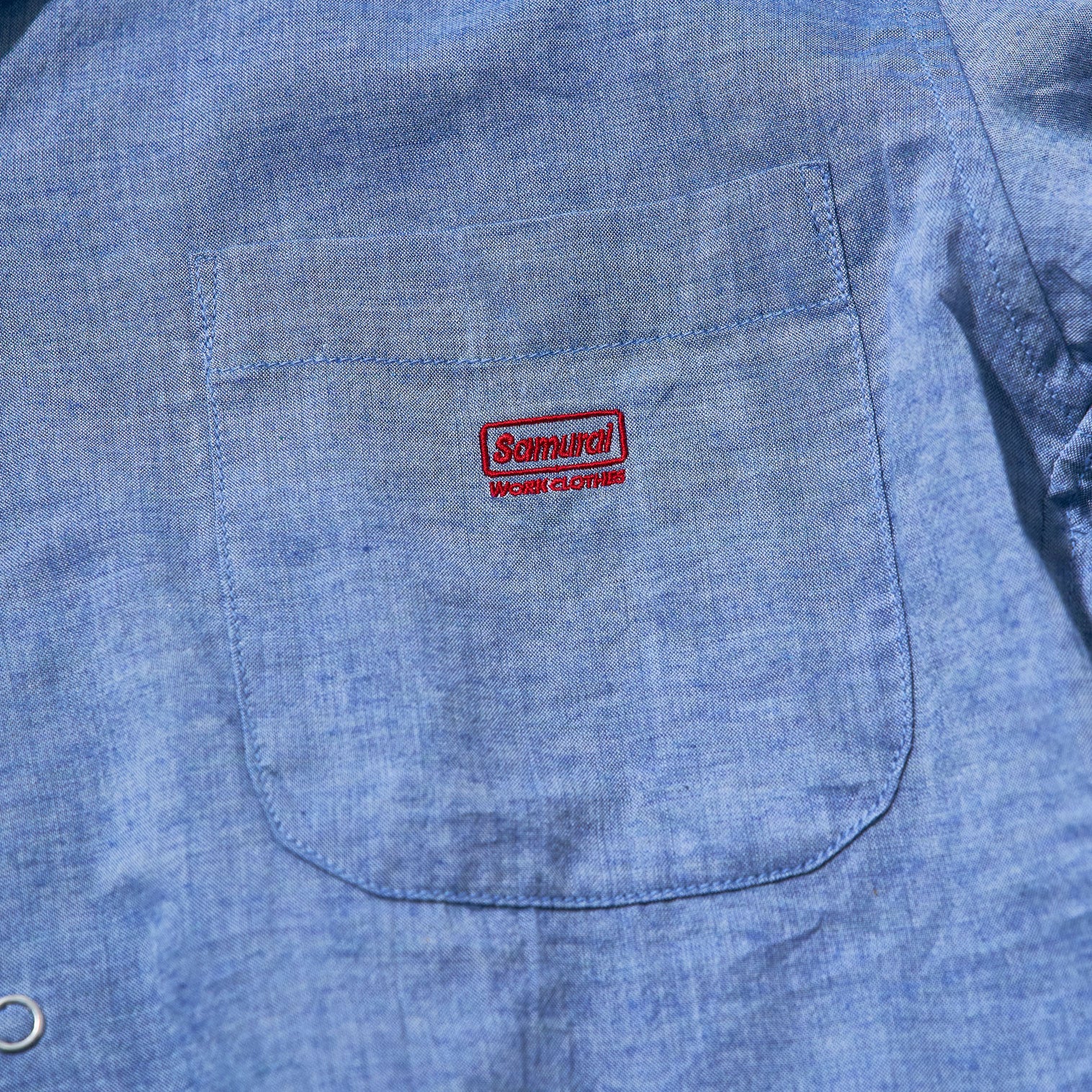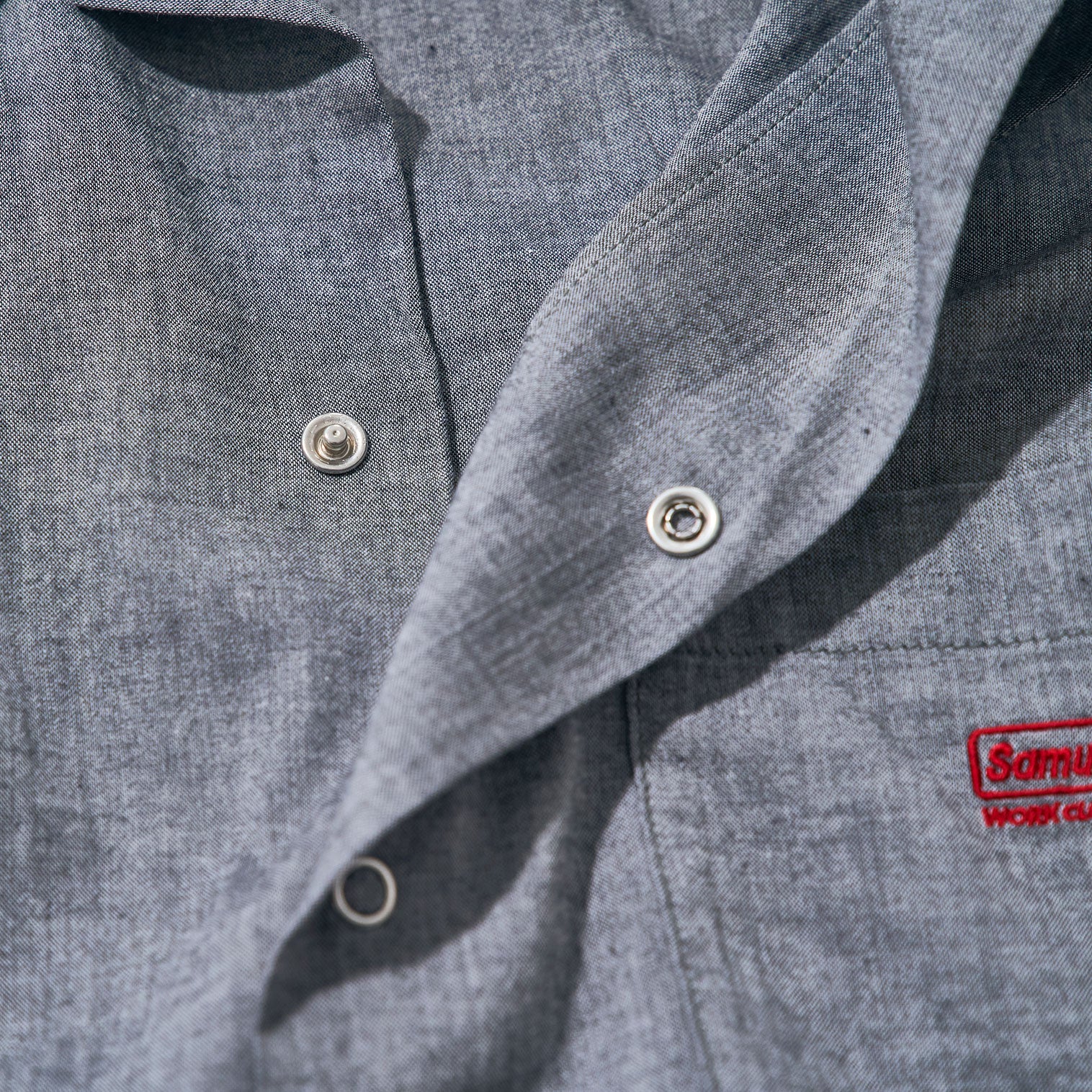 Spec:オーガニックコットンシャンブレー生地/Samurai WORK CLOTHES専用ラベル/リングスナップボタン/SWCロゴ刺繍/ワンウォッシュ/日本製