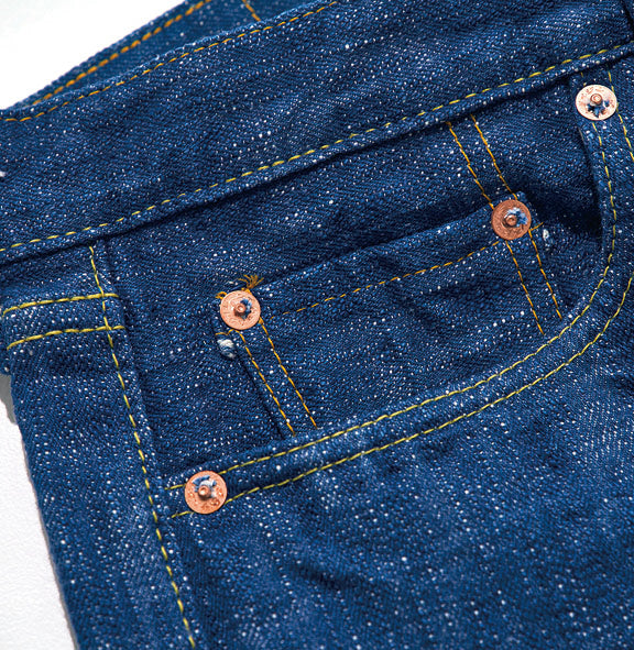 Spec:17oz叢雲セルビッチデニム/諸行無常スレーキ/鉄製日の出ボタン/銅製銭型リベット/専用革パッチ・フラッシャー/スリムストレート/ワンウォッシュ/日本製