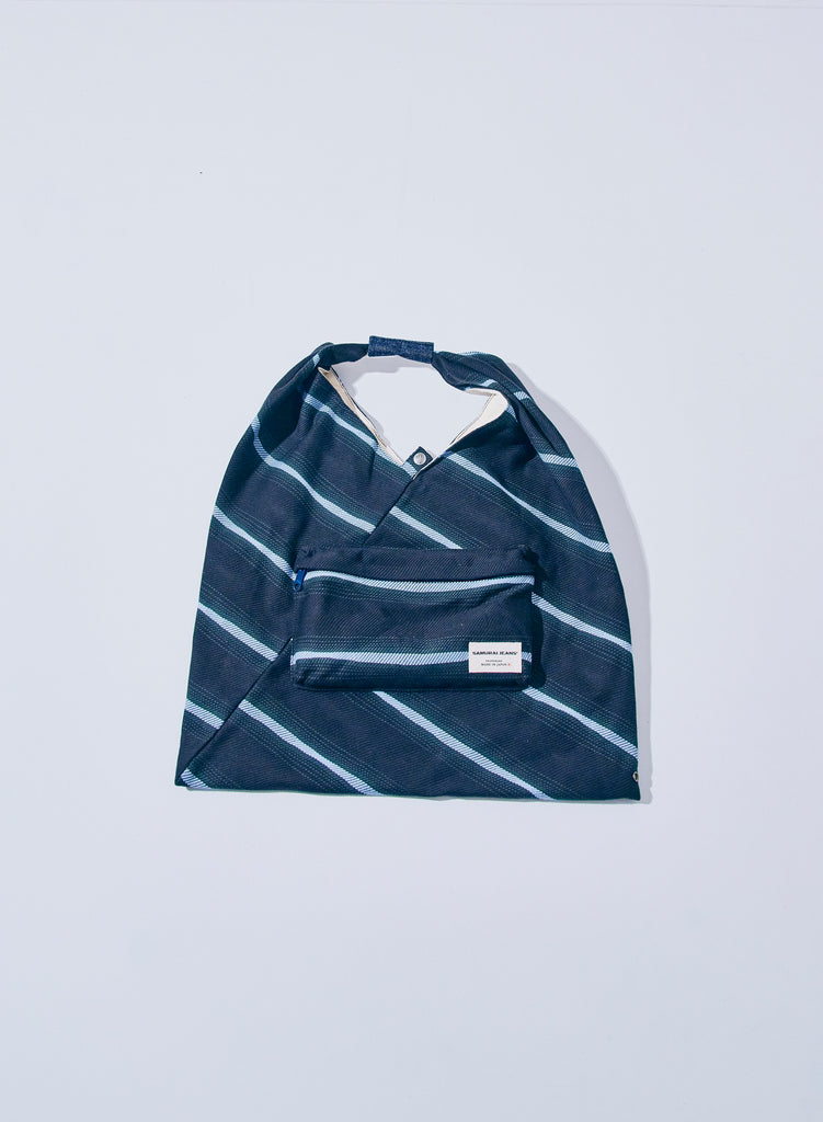 オリジナル生地によるアズマバッグです。外側に収納可能なポケットが付き、内側にも小物の収納スペースが付きます。表側の両端下部にスナップボタンが付き、自由に形を変えて使用可能です。日常使いから幅広い用途でご活用頂けます。