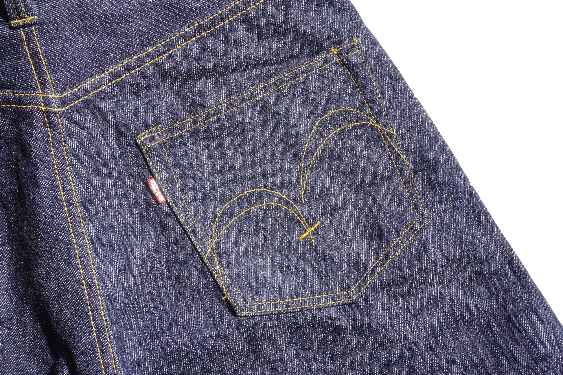 バックポケットはイエローとブラック糸によるWステッチ。縫製は、オリジナルイエロー綿糸をメインとした、このモデルならではの、スペシャル仕様となっております。